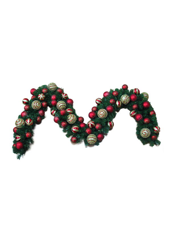 혼합된 축제 장식 공으로 크리스마스 화환